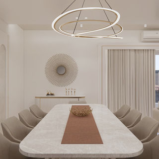 This luxurious apartment interior, designed for a Dubai-based client, masterfully blends minimalist aesthetics with opulent details. The white and gold theme creates a serene yet glamorous atmosphere, with clean lines and rich gold accents enhancing the sense of sophistication. The open-plan living and dining areas are illuminated by natural light, while the bedroom and kitchen feature sleek, high-end finishes. Every element, from marble countertops to elegant lighting fixtures, reflects a perfect balance of modern luxury and functionality, offering a refined, tranquil living space.